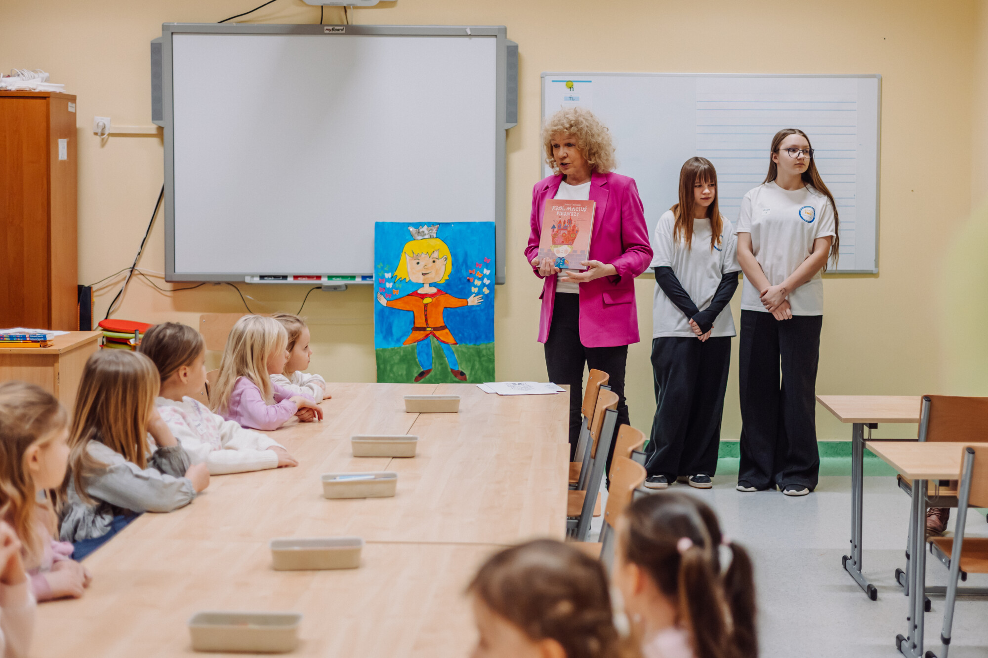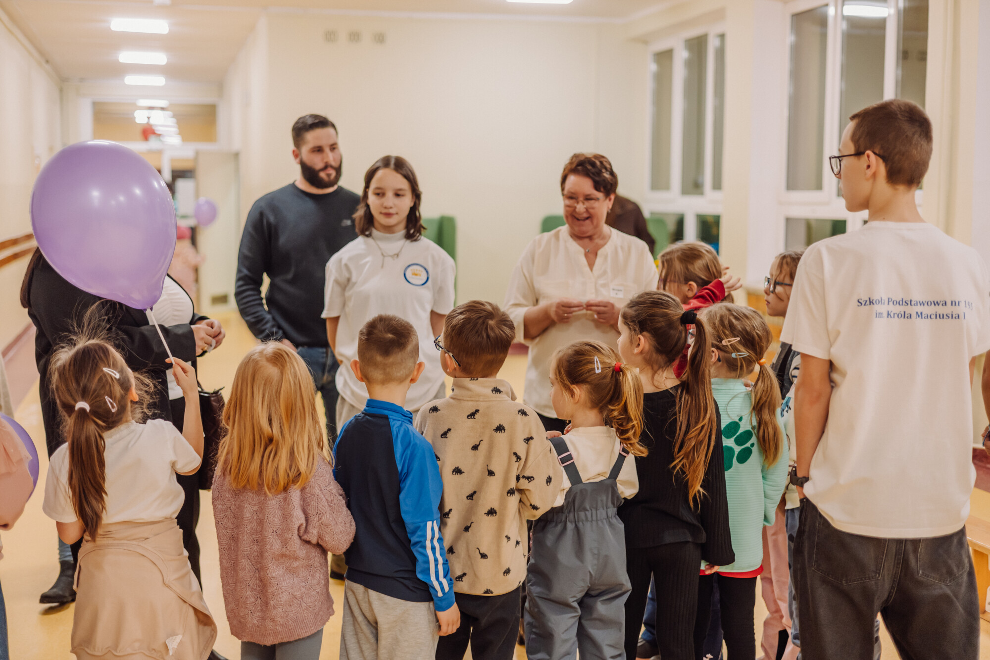 Po części artystycznej na najmłodszych czekała wyjątkowa atrakcja — Król Maciuś, zabrał dzieci na krótką wyprawę po szkole. Uczestnicy wzięli udział w zajęciach przygotowanych przez nauczycieli edukacji wczesnoszkolnej i świetlicy, podczas których mogli:
