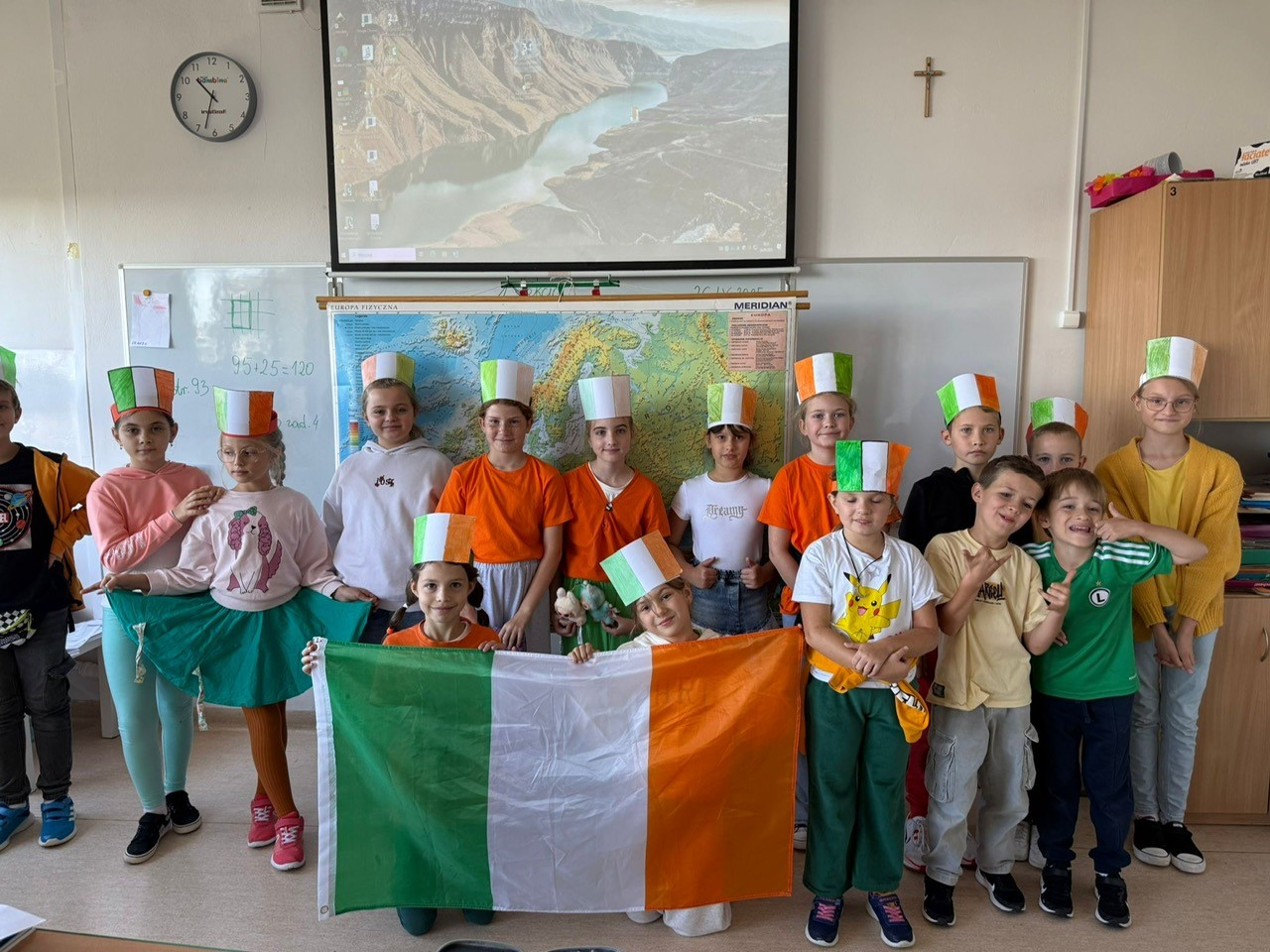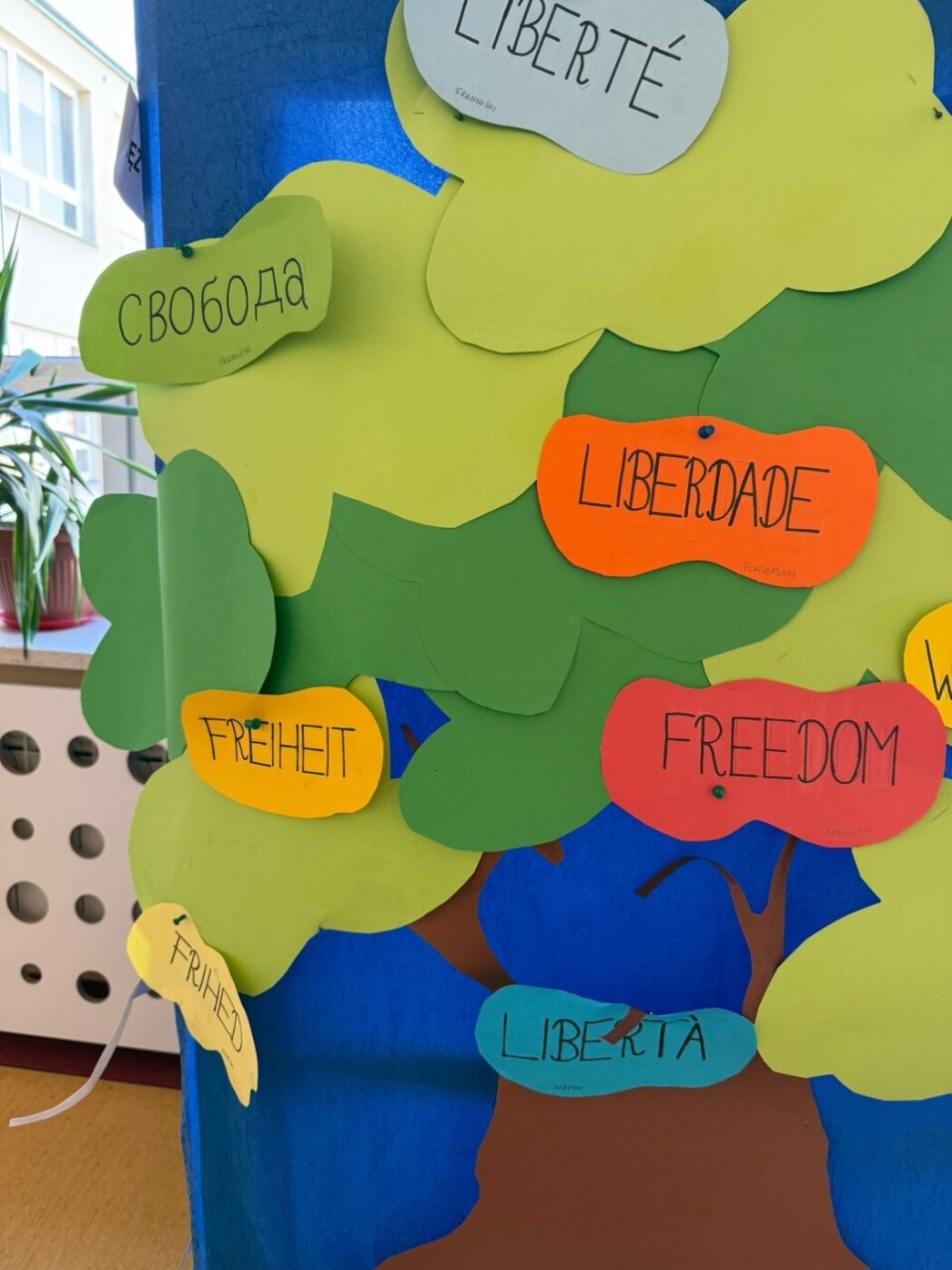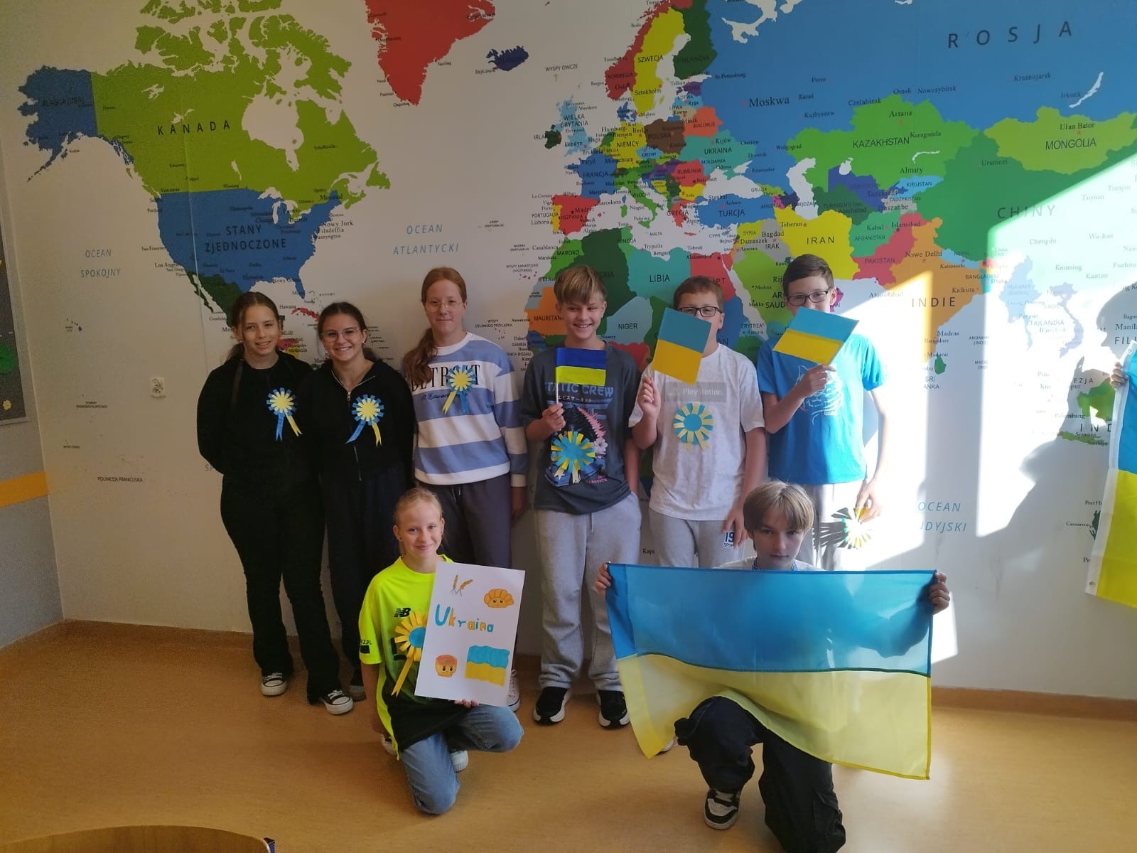 Uczniowie przyszli do szkoły ubrani w barwy wylosowanych państw europejskich, prezentując ich flagi i symbole. W klasach oraz na korytarzach można było podziwiać piękne dekoracje, w tym wyjątkową instalację ze słowem „pokój” zapisanym w wielu językach europejskich – symbol jedności i wzajemnego szacunku. Dzieci miały okazję kolorować flagi różnych państw, poznając ich historię i znaczenie. Dużym zainteresowaniem cieszyły się także quizy językowe, które sprawdzały znajomość europejskich języków oraz słownictwa. Uczniowie wykazali się dużą wiedzą, a przy tym świetnie się bawili!